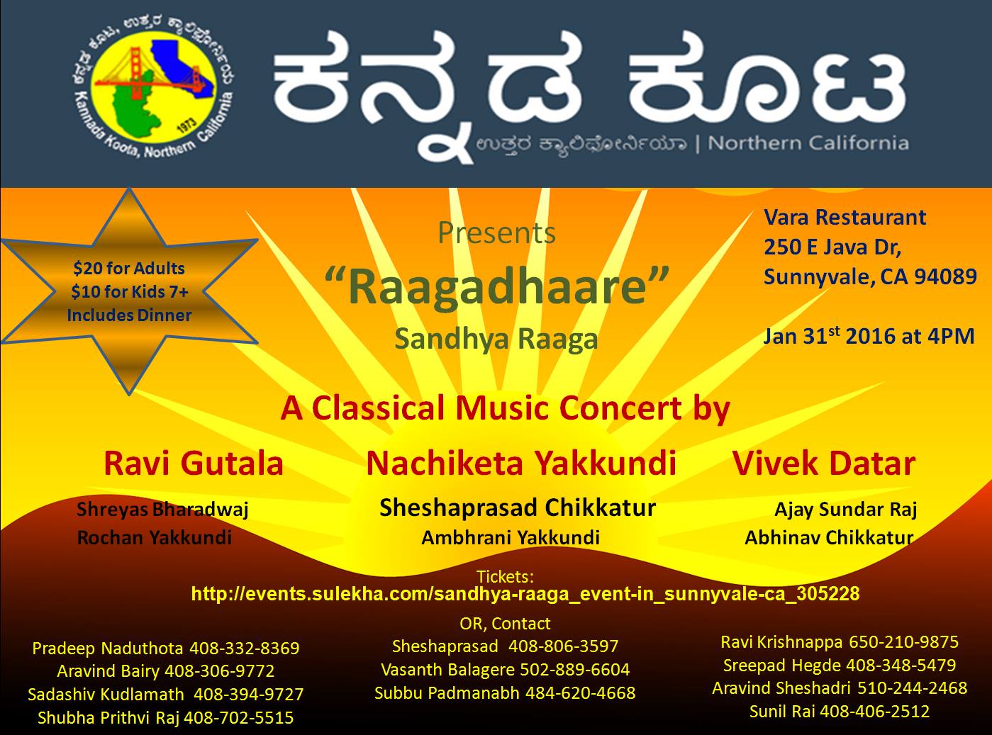 o Sunday the 31st Raagadhaare A classical concert organised by the Kannada Koota of Northern