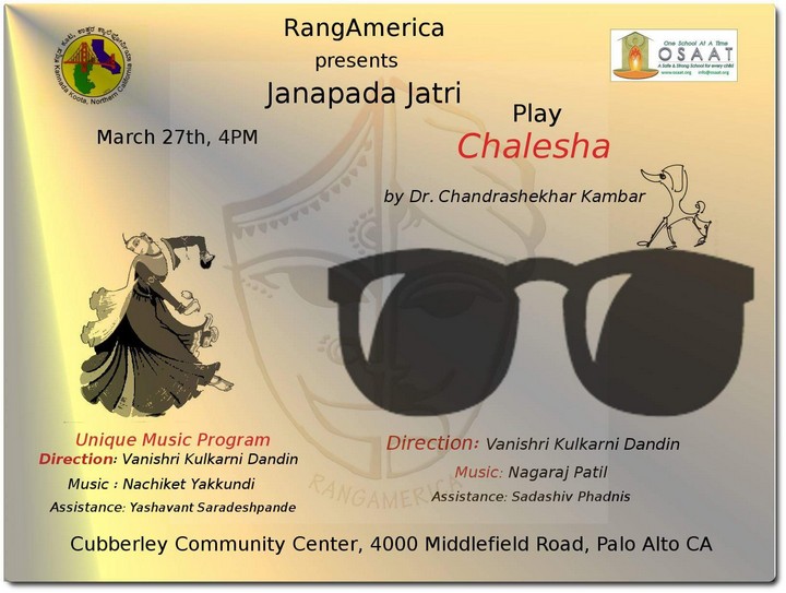 dance and musical retelling of an epic journey in Marathi. Tickets are available from here. Cubberley Theater, 4000 Middlefield Road, Palo