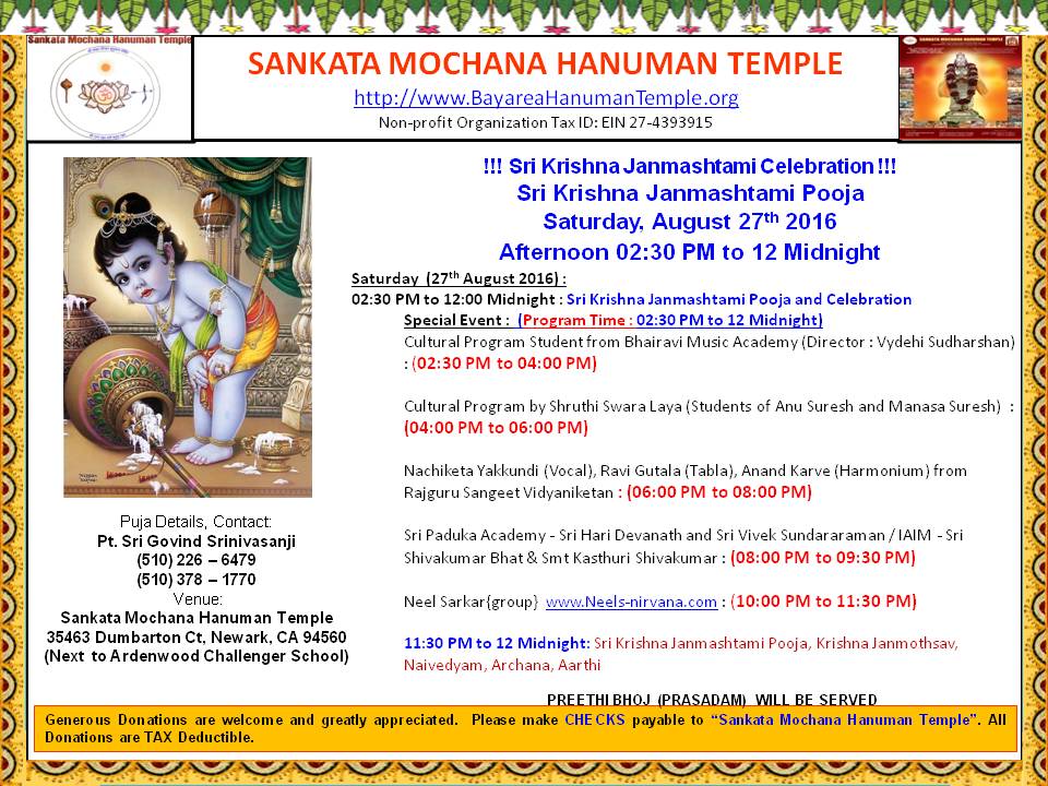 at the Sankata Mochana Hanuman Temple, 35463 Dumbarton Court, Newark, CA