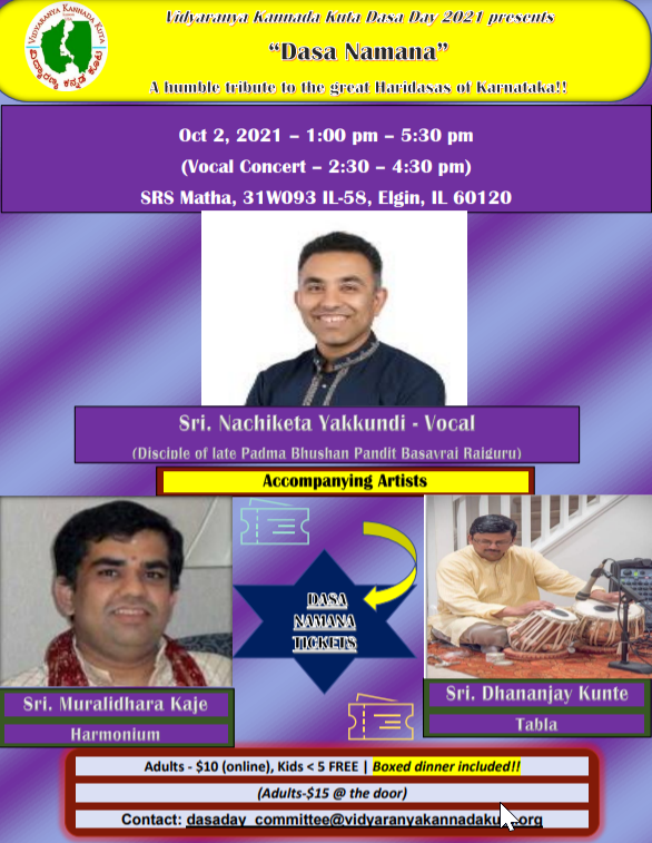 Dasa Namana a Hindustani concert celebrating the great Haridasas of Karnataka, organised by the Chicago-area Vidyaranya